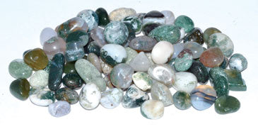 Moss agate is a grounding stone and the colors will remind you of nature. The properties of moss agate resonate with earth energy, nature, and natural processes and resonate with the heart chakra. It may help heal emotions, overactive minds, balance, and comfort stability. A variety of sizes and shapes are in this supportive bag of chips. Use these in several creative endeavors. 1 lb sold by weight only. From India.