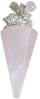 6-sided rose quartz pendulum. Rose quartz is the stone of unconditional love. May also assist you with love, forgiveness, phobias, fear, guilt, and negative energy making this a lovely tool in your divination practice.11" - 12" with chakra beads on a chain, sizes may vary slightly and size of pendulums. From India.