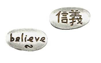 Double-sided aluminum "believe" charm. Keep this in your pocket or close by as a reminder to believe in yourself or your intention. 1" wide and sold individually.
