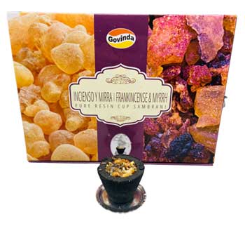 Fragrant and rich with the spiritual heritage of India, these dhoop cups go beyond the Vedas and can be a wonderful addition to your life. Enjoy the pure fragrance blend of frankincense and myrrh in an easy-to-use convenient cup. To enjoy this unique resin blend and what it has to offer, simply light the entire rim of the cup then blow out the flame, place it on the included metal plate, and enjoy the powerful fragrance. Set of 12 frankincense and myrrh pure resin cups.