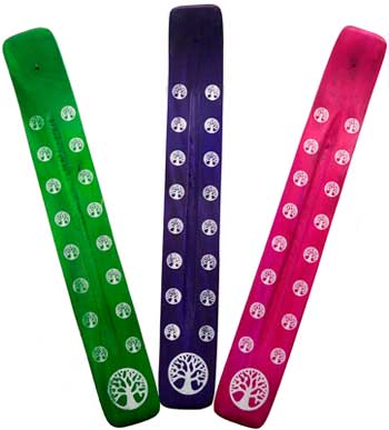 A wooden ash catcher is suitable for all types of incense sticks. Do not use it to burn cone incense. Comes in a variety of brightly dyed hues. Randomly chosen. 10" x 1 3/8"
