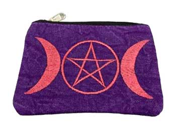 Simple yet attractive coin purse with the triple moon embroidered on the cover. This offers a zipper closure to safely secure your items placed within. 4" x 6" cotton with colors that may vary. From India.